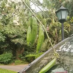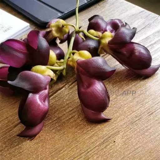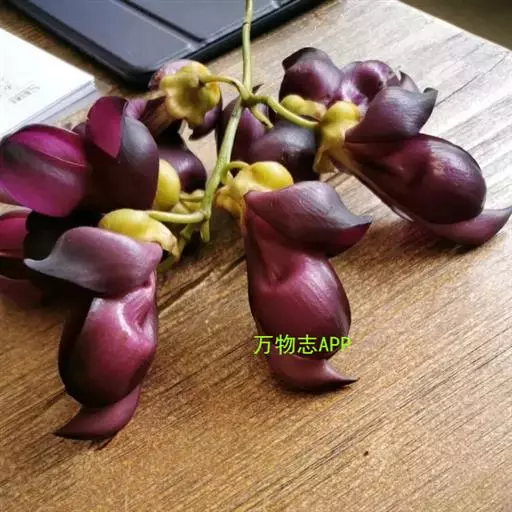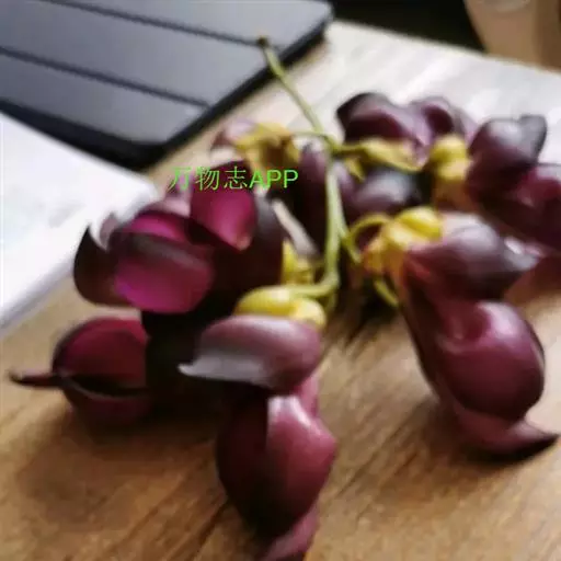 果木质,带形,长30-45厘米,宽3.5-4.5厘米,厚1-1.5厘米,近念珠状,密被红褐色短绒毛,幼果常被红褐色脱落的刚毛,沿背、腹缝线各具宽3-5毫米的木质狭翅,有纵沟,内部在种子之间有木质隔膜,厚达4毫米;种子5-13颗,深紫黑色,近肾形,长约2.8厘米,宽约2厘米,厚8-10毫米,常有光泽,种脐为种子周长的1/2-3/4。花期4-6月,果期6-11月。