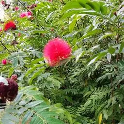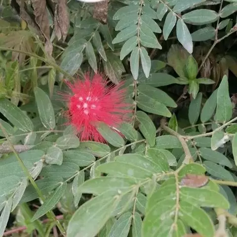 朱缨花,豆科朱缨花属的多年生木本植物,枝条扩展,小枝褐色;叶片呈卵状披针形;头状花序腋生,…