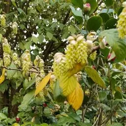 壳菜果是金缕梅科壳菜果属常绿乔木;小枝具节及环状托叶痕,叶宽卵形;萼筒花藏在肉质花序轴中与子房壁合生,…