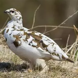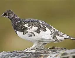 岩雷鸟(学名:Lagopus muta):共有25个亚种。雄鸟体长为38厘米,体重380克;雌鸟体长36厘米,体重450克。嘴较平而弱,爪的前端带有黑色。它的羽色与柳雷鸟很相近,只是夏季的羽色比柳雷鸟浅淡一些,呈皮黄灰色;冬季时,从嘴角到眼睛后面有一条宽的黑纹。眼睛内的虹膜褐色;嘴、爪都是黑色。