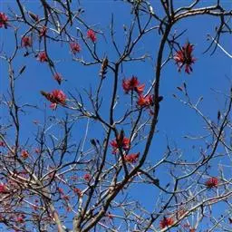 刺桐,是豆科刺桐属乔木植物。树皮灰褐色;分枝有圆锥形黑色皮刺;叶柄无毛,无刺;花密集,…