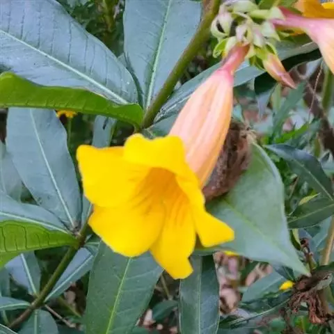 软枝黄蝉花橙黄色,大而美丽,供观赏用。