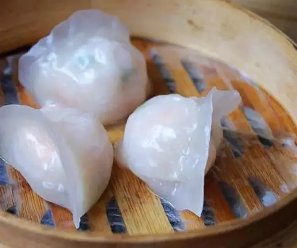 4.取小格蒸笼,放入10个生坯,上旺火沸水锅蒸约5分钟即可。食时备玫瑰香醋和嫩姜丝蘸食。
