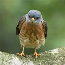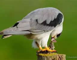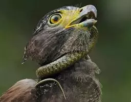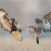 幼雏发育的早期阶段,亲鸟一般把猎物带回巢,撕碎后喂给雏鸟,或放置在巢中,任雏鸟啄食,虽然取食比较困难,但可以看作是一种重要的锻炼。在后期,特别是离巢出飞阶段,亲鸟可将猎物撕成大块喂给雏鸟,甚至在空中抛给雏鸟练习它们的捕食能力。(4周龄雏鸟)