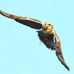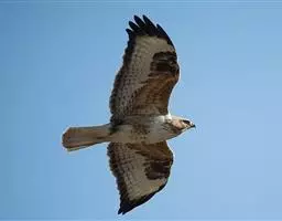 棕尾鵟(学名:Buteo rufinus):是鹰科鵟属的中大型猛禽,体长50-65厘米,体重1280克。成鸟头、颈棕褐色,上体褐色;第2-5枚初级飞羽外翈具横斑;下体棕白色;尾部棕褐色,与其他种类的鵟不同。飞行时,翅上举呈“V”形,翼尖黑色。