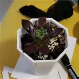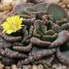 荒玉为番杏科生石花属,原产南非。株体呈白粉色,表面布满凹凸纹路,凹陷处为红褐色,每年秋季开黄花。