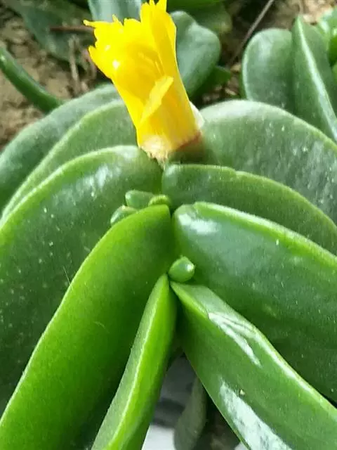 照波,番杏科多肉植物、此种生长较快,栽培容易,细长的浓绿色叶3厘米左右,开黄色花。…
