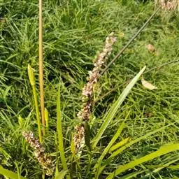 花葶通常长于叶,长45-100厘米;总状花序长(12-)25-40厘米,具许多花;花(3-)4-8朵簇生于苞片腋内;苞片小,近刚毛状,长3-4毫米,有时不明显;小苞片卵形,干膜质;花梗长4-5毫米,关节位于中部或中部偏上;花被片矩圆状披针形或近矩圆形,长约3.5毫米,先端钝,紫色或红紫色;花丝长约1.5毫米;花药近矩圆状披针形,长1.5-2毫米;子房近球形,花柱长约2毫米,柱头三齿裂。种子球形,直径6-7毫米,初期绿色,成熟时变黑紫色。花期7-8月,果期9-11月。
