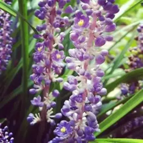 阔叶山麦冬(学名:Liriope muscari (Decne.) L.H.Bailey)是百合科山麦冬属植物。根细长,分枝多,有时局部膨大成纺锤形的小块根,小块根长达3.5厘米,宽约7-8毫米,肉质;根状茎短,木质。叶密集成丛,革质,长25-65厘米,宽1-3.5厘米。花葶通常长于叶,长45-100厘米。种子球形,直径6-7毫米,初期绿色,成熟时变黑紫色。花期7-8月,果期9-11月。
