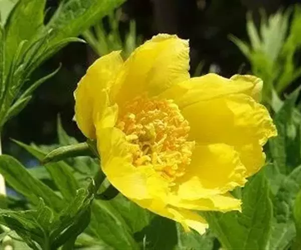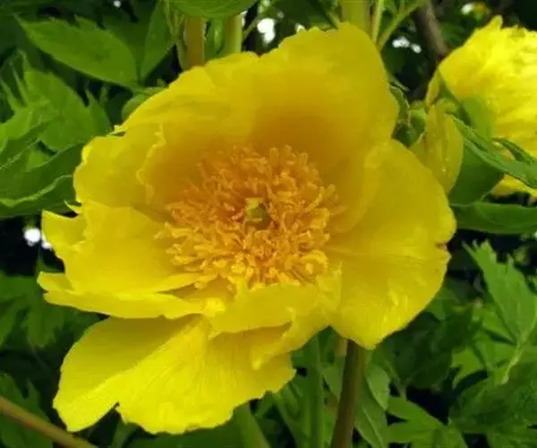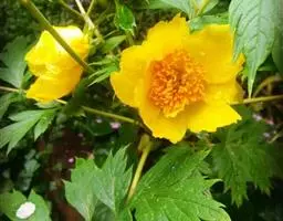 落叶灌木。高1-2.5m,最高可达3.5m。叶 大花黄牡丹 为2回3出复叶,带有美丽的青铜色。花(2)3-4朵生枝顶或叶腋,直径8-12cm;花瓣、花丝与花药均为黄色; 心皮1,少数2。花期5月,果期8-9月。它以植株高大、花朵硕大而显著、心皮数较少区别于滇牡丹P.delavayi,是极珍贵的牡丹观赏、育种材料。