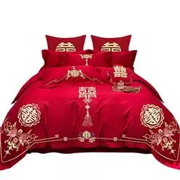 (1).用作床面铺饰的宽幅织物。以纯棉或混纺纱线为原料,采用平纹、斜纹、变化组织或提花组织,在宽幅织机独幅织制。有全白、素色、彩条、彩格、印花、提花、烂花、绣花等。花型美观,布面平整,手感挺爽,坚牢耐用,是兼有实用性和装饰性的纺织品。