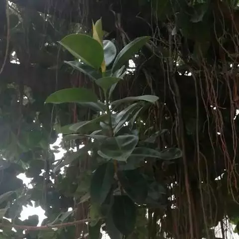三角榕为常绿乔木或小乔木。叶片近三角形,薄肉质,全缘,长4~6厘米,宽3~5厘米,浓绿色。