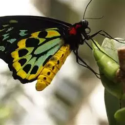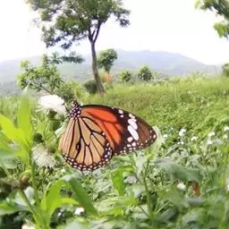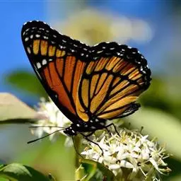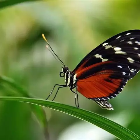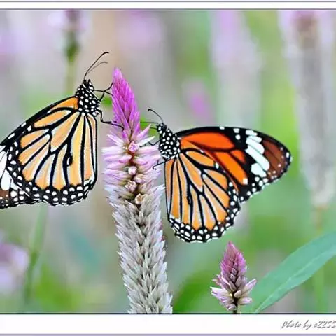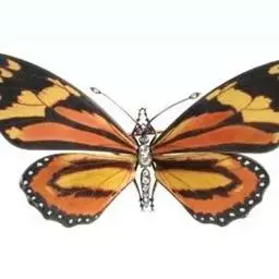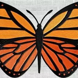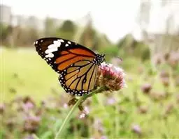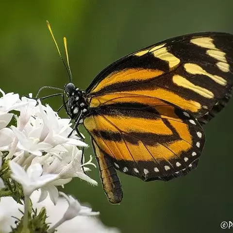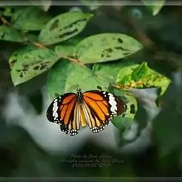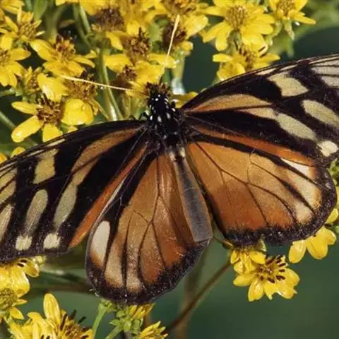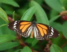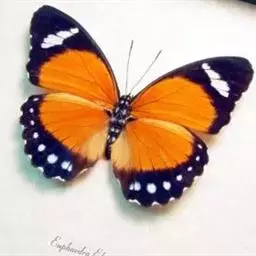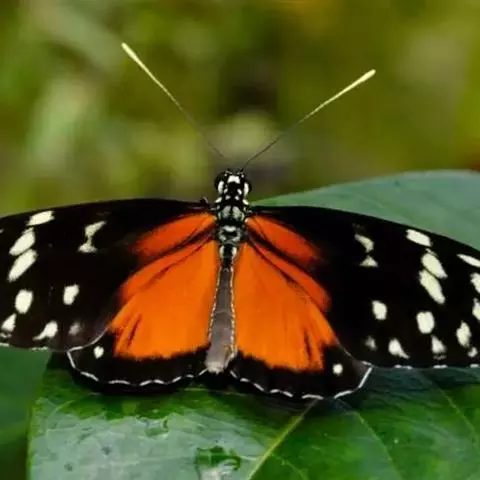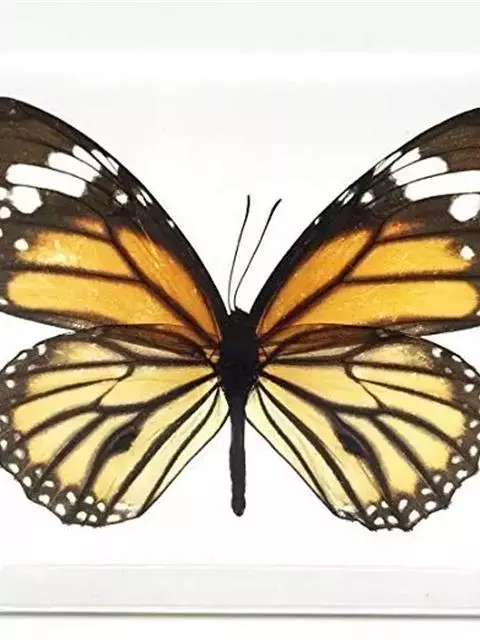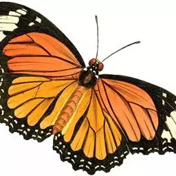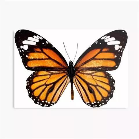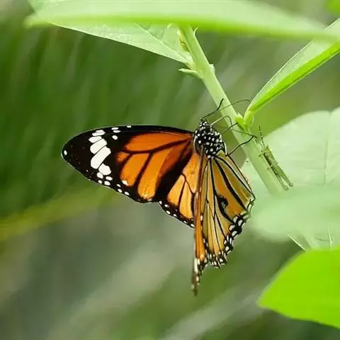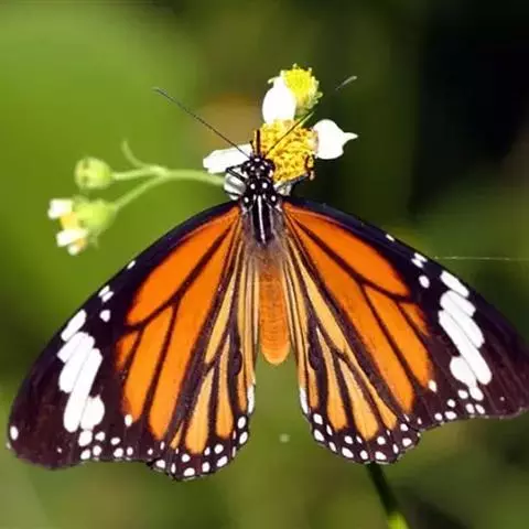 黑脉金斑蝶:翅阔8.6-12.4厘米。雄蝶较雌蝶为大。成年蝶颜色鲜艳,翅膀上有显眼的橙色及黑色斑纹…