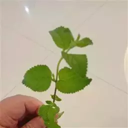 叶厚纸质,大小形状变异很大,卵形至椭圆状披针形,长3-10厘米,宽1.5-4厘米,先端渐尖、尾状渐尖或锐尖,基部稍偏斜,圆形、宽楔形、稀浅心形,叶面绿,干后深绿至暗褐色,被糙毛,叶背浅绿,干后变淡绿至紫红色,密被柔毛,边缘具圆齿状锯齿,侧脉8-15对;叶柄粗短,长3-7毫米,被柔毛。