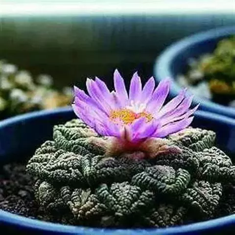 岩牡丹是仙人掌科、岩牡丹属多年生草本多浆植物。植株球形或呈扁平的莲座状,灰绿色,球体表面被白粉。…
