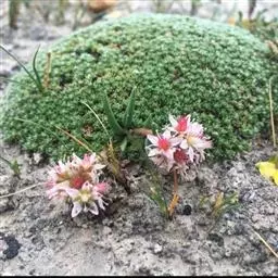 花瓣白色,花径2.5厘米,花萼淡绿白色,花药金黄色,雄蕊金黄色。花瓣及花萼数各为8-12及4。幼叶紫绿色,背面颜色稍浅于成叶;成叶铜绿色,叶缘红色,背面铜红色,脉纹明显。叶椭圆形,叶基“V”字形开裂,裂片契形,先端圆钝。叶长5×9厘米,叶展40-60厘米。评述:这是一个最小型的白花耐寒睡莲品种。能结实,果实为浆果,近球形,黑褐色种子发芽率较高。适合盆、桶栽及小型水池栽植。