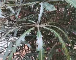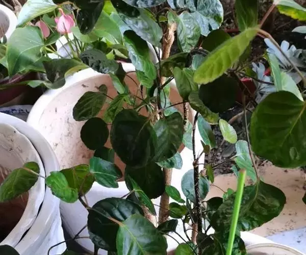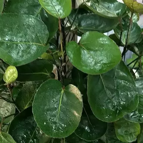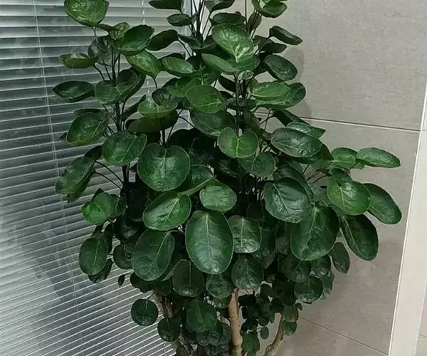 圆叶福禄桐又称圆叶南洋森、圆叶南洋参,为五加科、南洋森属常绿灌木或小乔木,植株多分枝,茎干灰褐色,密布皮孔。枝条柔软,叶互生,3小叶的羽状复叶或单叶,小叶宽卵形或近圆形,基部心形,边缘有细锯齿,叶面绿色。