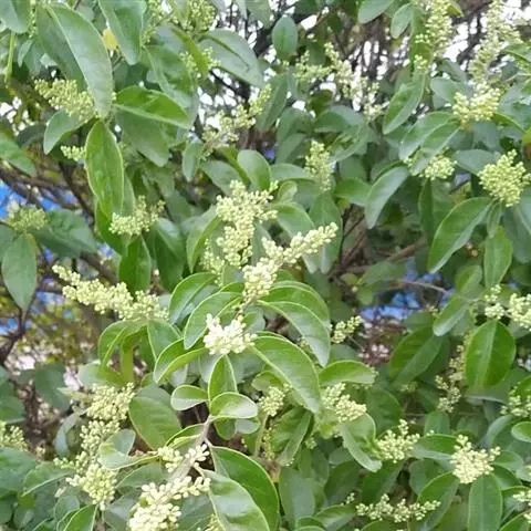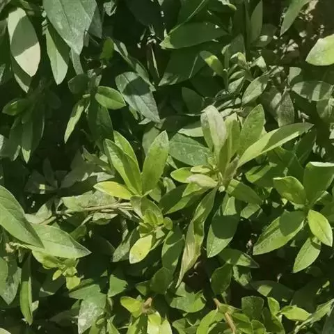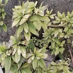 叶互生,纸质,厚实,幼叶青色,成熟叶色浓绿,背面泛白,自然脱落后褐色,叶片集生于枝端,椭圆形至椭圆状披针形,先端急尖,具短尖头,基部锲形、叶片毛少,表面有淡黄色伏帖毛,背面淡绿色,疏被黄色伏帖毛。先叶后花。
