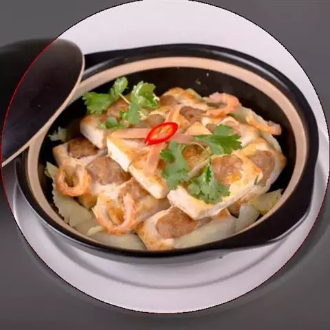 豆腐煲是一道美味可口的名肴,属于粤菜系。主料:北豆腐、蟹味菇、瑶柱、鲜茶树菇