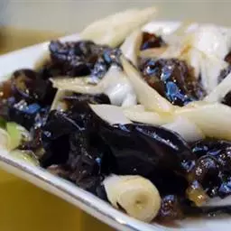 香拌木耳,以泡发木耳、蒜瓣为主料的菜品。