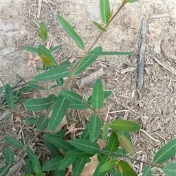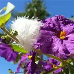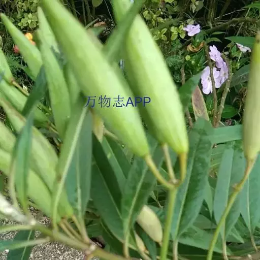 马利筋 多年生直立草本,灌木状,高达80厘米,全株有白色乳汁;茎淡灰色,无毛或有微毛。叶膜质,披针形至椭圆状披针形,长6-14厘米,宽1-4厘米,顶端短渐尖或急尖,基部楔形而下延至叶柄,无毛或在脉上有微毛;侧脉每边约8条;叶柄长0.5-1厘米。聚伞花序顶生或腋生,着花10-20朵;花萼裂片披针形,被柔毛;花冠紫红色,裂片长圆形,长5毫米,宽3毫米,反折;副花冠生于合蕊冠上,5裂,黄色,匙形,有柄,内有舌状片;花粉块长圆形,下垂,着粉腺紫红色。蓇葖披针形,长6-10厘米,直径1-1.5厘米,两端渐尖;种子卵圆形,长约6毫米,宽3毫米,顶端具白色绢质种毛;种毛长2.5厘米。花期几乎全年,果期8-12月。