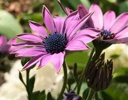 南非万寿菊 南非万寿菊为菊科宿根多年生草本花卉,原产南非,近年来从国外引进我国,作一二年生草花栽培。矮生种株高20-30 cm,茎绿色,头状花序,多数簇生成伞房状,有白、粉、红、紫红、蓝、紫等色,花单瓣,花径5-6cm,种子1000粒重11克左右。同属高生种株高 60cm,为亚灌木,在原产地可作切花栽培。