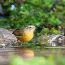 金色林鸲是鹟科、鸲属小型鸟类,体长12-15厘米。头顶至背黄橄榄绿色,眼先和头侧黑褐色,眉纹金橙黄色。…