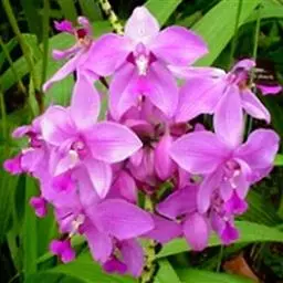 紫花苞舌兰:植株高达1米。假鳞茎卵状圆锥形,具3-5枚叶。叶质地薄,淡绿色,狭长,具折扇状的脉。…