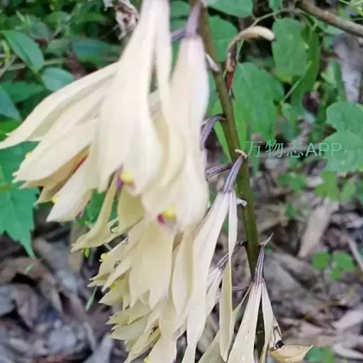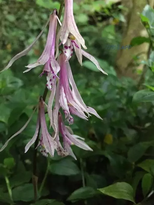 杜鹃兰(学名:Cremastra appendiculata (D. Don) Makino):假鳞茎卵球形或近球形,密接,有关节,外被撕裂成纤维状的残存鞘。叶通常1枚,生于假鳞茎顶端,狭椭圆形、近椭圆形或倒披针状狭椭圆形。花葶从假鳞茎上部节上发出,近直立;总状花序长10-25厘米,具5-22朵花;花常偏花序一侧,多少下垂,不完全开放,有香气,狭钟形,淡紫褐色;花瓣倒披针形或狭披针形,向基部收狭成狭线形,长1.8-2.6厘米,上部宽3-3.5毫米,先端渐尖;唇瓣与花瓣近等长,线形,上部1/4处3裂。蒴果近椭圆形,下垂。花期5-6月,果期9-12月。