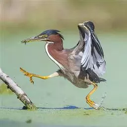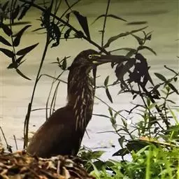 绿鹭:是鹳形目鹭科绿鹭属鸟类。体型小,头顶黑,枕冠亦黑色,上体蝉灰绿色,…