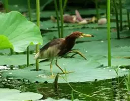 棕夜鹭是一种中型涉禽,身长56-66 cm。这是一个矮胖的鹭。黑色头冠,腿爪是明亮的黄肉桂色。…