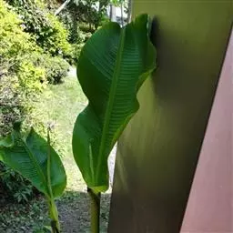 红蕉,假茎高1-2米。叶片长圆形,长1.8-2.2米,宽68-80厘米,叶面黄绿色,叶背淡黄绿色,…