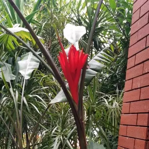 紫苞芭蕉形如一枝亭亭玉立、含苞待放的荷花,但却开在高高的芭蕉树上,这就是紫苞芭蕉。