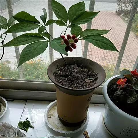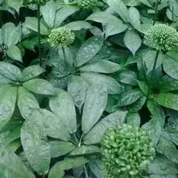 播种繁殖在4月下旬采收种子,采后堆放后熟,水洗净种,随采随播,种子平均发芽率为26.3%,发芽率较低,由此,随采随播不是八角金盘理想的播种方式。因为八角金盘果实为浆果,种子含水量较高,而且有一层黏液附着在刚洗干净的种子表面,妨碍氧气进入种子内部,造成种子缺氧,而且容易使种子发生霉变,导致种子发芽率下降;而经过阴干的种子恰好克服了这些缺点,种子阴干5、15、25d后种子平均发芽率分别为60.0%、75.3%、51.0%,种子发芽率较随采随播分别提高了33.7%、49%和24.7%,如不能当年播种,自然干藏的种子发芽率为18.5%,冰箱干藏的种子发芽率为48.7%,冰箱干藏的种子发芽率较自然干藏的种子发芽率提高了30.2%;说明八角金盘的种子经过冰箱干藏后能够相对地延长其寿命,而且对于提高种子发芽率也有一定的促进作用。播前应先搭好荫棚,播后1个月左右发芽出土,及时揭草,保持床土湿润,入冬幼苗需防旱,留床一年或分栽,培育地选择有庇阴而湿润之处的旷地栽培,需搭荫棚;在3~4月带泥球移植。
