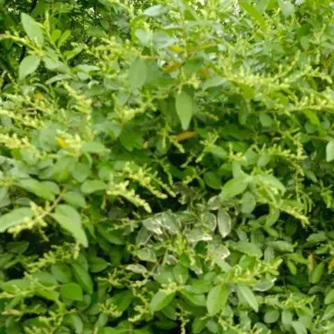 圆锥花序顶生,近圆柱形,长4-15(-22)厘米,宽2-4厘米,分枝处常有1对叶状苞片;小苞片卵形,具睫毛;花萼无毛,长1.5-2毫米,萼齿宽卵形或钝三角形;花冠长4-5毫米,花冠管长2.5-3毫米,裂片卵形或椭圆形,长1.5-3毫米,先端钝;雄蕊伸出裂片外,花丝与花冠裂片近等长或稍长。