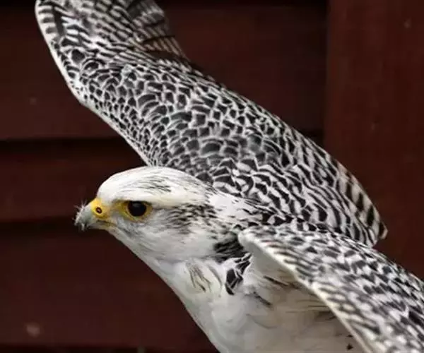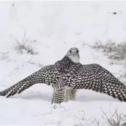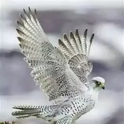 矛隼(学名:Falco rusticolus):是隼科的一种,体长60厘米,翼展105-135厘米,体重1000-2150克。嘴、脚强健并具利钩,适应于抓捕及撕食猎物。喙基具蜡膜;翅强而有力,善疾飞及翱翔。索腭型头骨。脚和趾强健有力,通常3趾向前,1趾向后,呈不等趾型。头骨宽阔,上眼眶骨扩大,眼球较大,视野宽阔,视觉敏锐;听觉发达。