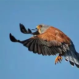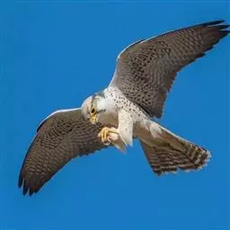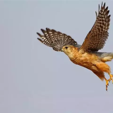 燕隼:是隼科、隼属的鸟类。体长约36厘米,体重140-340克。体形比猎隼、游隼等都小,为小型猛禽,…