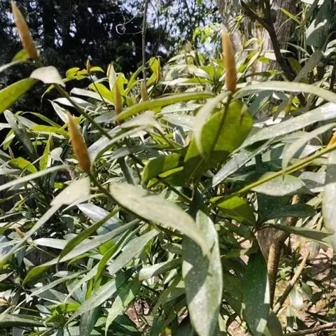 柳叶润楠,灌木至小乔木,通常高3—5米。枝条褐色,有浅棕色纵裂的皮孔,初时略被极细的绢状微柔毛,后…