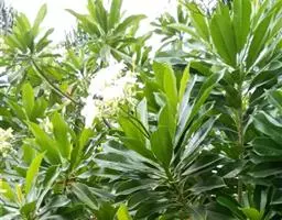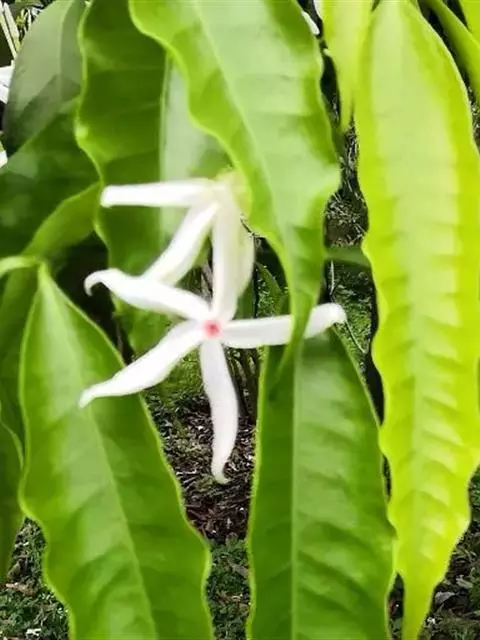 狗牙花 R. Br. ex Roem. & Schult.)是夹竹桃科山辣椒属灌木植物;枝灰绿色;叶椭圆形或椭圆状长圆形,叶面深绿色,背面淡绿色,叶面扁平;花聚伞花序腋生,通常双生,萼片长圆形,边缘有缘毛,花冠白色;果长圆形;花期六至十一月;果期秋季。狗牙花因其花冠裂片边缘有皱纹,状如狗牙,故名。狗牙花原产于印度及中国云南,在广西、广东、台湾及亚洲热带和亚热带等地区广泛栽培。狗牙花喜温暖湿润,不耐寒,宜半阴,对土壤要求不严,喜肥沃、排水良好的酸性土壤,常生长于山地灌木丛中。狗牙花的主要繁殖方式为扦插。狗牙花味酸、凉,有清热降压、解毒消肿的功效,可用于治疗咽喉肿痛,跌打损伤。狗牙花枝叶茂密,株型紧凑,花朵净白素丽,典雅朴质,盛花时十分美观,且花期长,具有一定观赏价值。狗牙花还有较高的经济价值,园林中应用极为普遍,可丛植于林缘、路