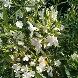白花夹竹桃是夹竹桃科、夹竹桃属植物夹竹桃的栽培品种。常绿直立大灌木,枝条灰绿色;嫩枝条具稜,被微毛,…