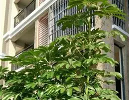 昆士兰伞木,吕松鹅掌柴 ,称昆石兰遮树,澳洲鸭脚木、方式叶鹅掌柴、伞树、大叶伞。叶片阔大,柔软下…