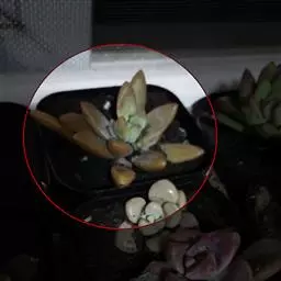 叶子表面宽厚,富肉质感且带有磨纱质感,看像石头质地;开红色小花,生于植株顶部,倒伞形密生,形状像花…