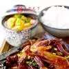 香锅虾是一道美食,制作原料主要有新鲜海虾、藕、洋葱。