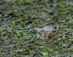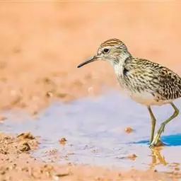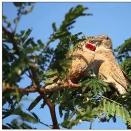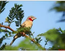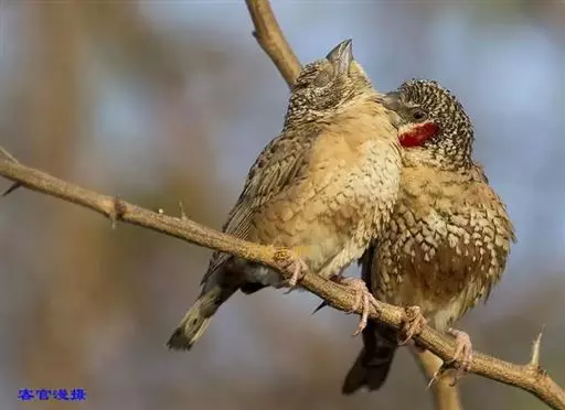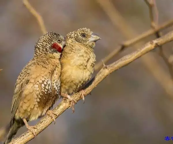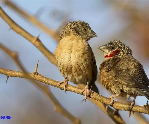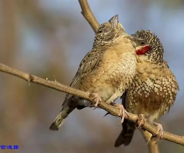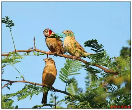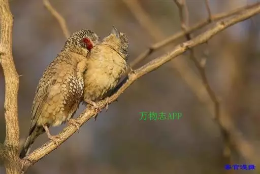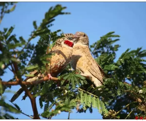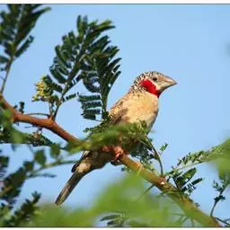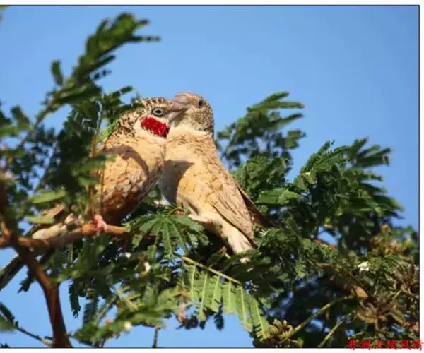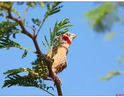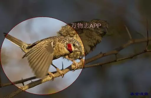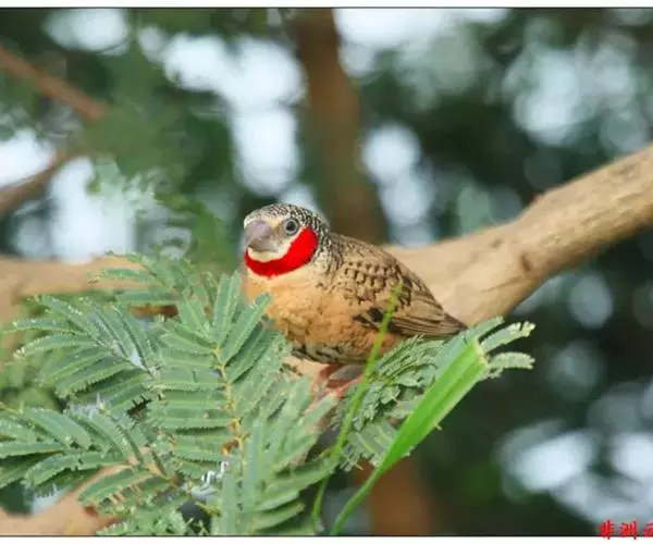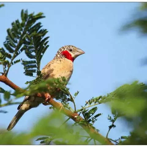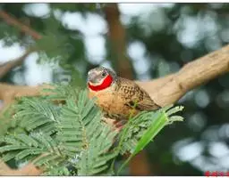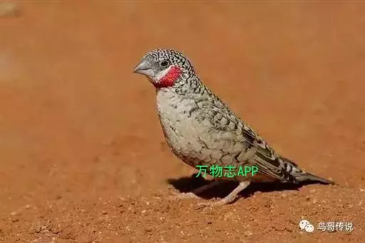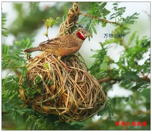 雄性成鸟具有红色候斑,分布于非洲的撒哈拉沙 漠以南地区。它们生活在热带草原及干燥林地中,以种子和昆虫为食。