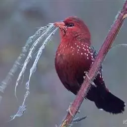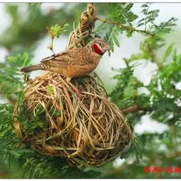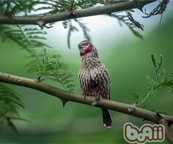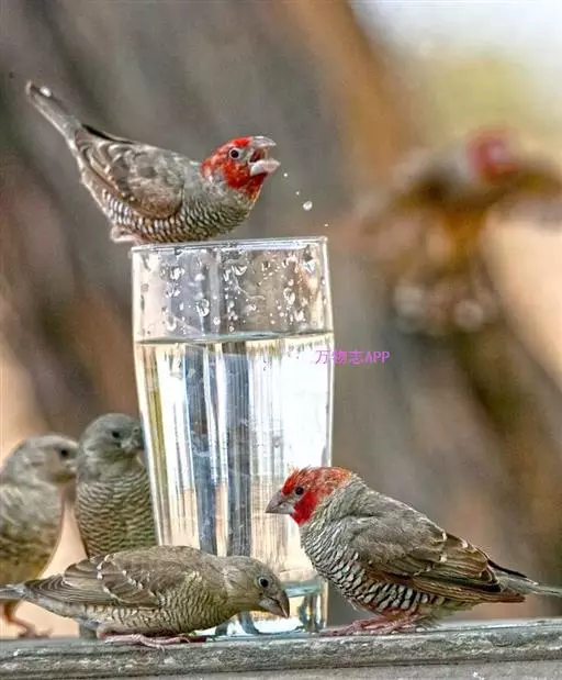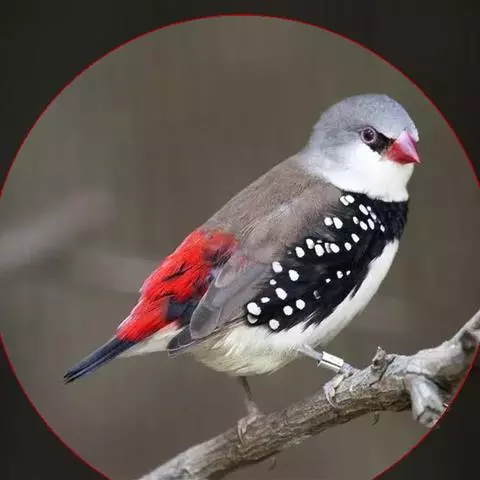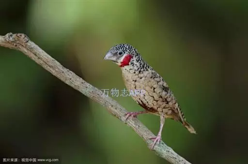 红梅花雀小型鸟类,体长9-10厘米。雄鸟通体朱红色,背、肩、胸等满布白色小斑点,…