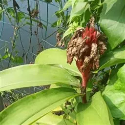 金嘴蝎尾蕉:芭蕉科,蝎尾蕉属多年生草本植物。株高可达6米。叶片长圆形,叶面绿色,叶背亮紫色;顶生花…