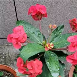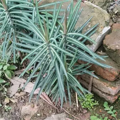 虎刺梅:别称铁海棠,是蔓生灌木植物。茎多分枝,长60-100厘米,直径5-10毫米,具纵棱,密生硬…