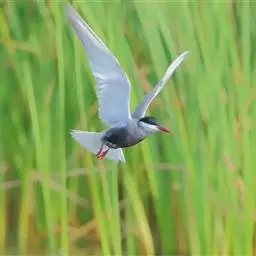 水雉 单独或成小群活动,冬季有时亦集成大群。性活泼,善行走,步履轻盈,能在漂浮于水面的百合、莲、菱角等水生植物上来回奔走和停息。亦善游泳和潜水,游泳时头尾上扬,露出水面甚高,有时亦潜行于水底或沿水面飞行。常在小型池塘及湖泊的浮游植物如睡莲及荷花的叶片上行走。挑挑拣拣地找食,间或短距离跃飞到新的取食点。鸣叫似猫的“喵喵”声。