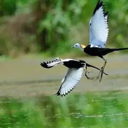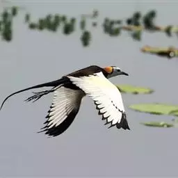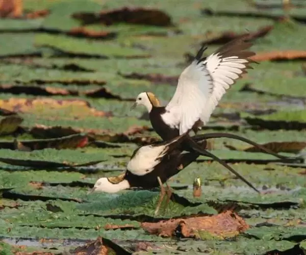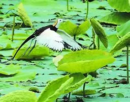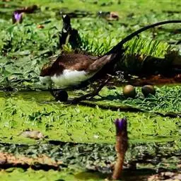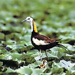 水雉 栖息于富有挺水植物和漂浮植物的淡水湖泊、池塘和沼泽地带。