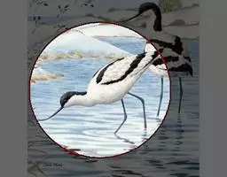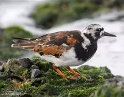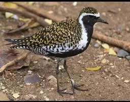 夏羽头、颏、喉和前颈白色,后颈金黄色,枕黑色,往两侧延伸成一条黑线,沿颈侧而下与胸部黑色相连,将前颈白色和后颈金黄色截然分开。背、肩棕褐色,具紫色光泽。腰、尾上覆羽和尾黑色。翅上覆羽白色,第一和第二枚初级飞羽黑色,第二枚的内翈基部有一小白点,第三枚亦为黑色,但内翈大部已变为白色。从此往内白色越来越大,仅羽尖残留黑色,到内侧次级飞羽则全为白色。下体棕褐色。腋羽和翼下覆羽白色。4枚中央尾羽特形延长,且向下弯曲。虹膜褐色,嘴蓝灰色,尖端缀有绿色,附蹠和趾淡绿色。 冬羽头顶和后颈黑褐色,具白色眉纹,颈侧具黄色纵带,一条粗的黑褐色过眼纹沿颈侧黄色纵带前面而下,与宽阔的黑褐色胸带相连。其余下体白色,尾短。上体较夏羽为淡,呈绿褐色或灰褐色。飞羽同夏羽,外侧和内侧翅覆羽白色,中间翅覆羽具淡褐色横斑。 虹膜淡黄色,嘴黄色,尖端褐色,脚、趾暗绿色至暗铅色。 幼鸟似非繁殖期成鸟,但颈无黄色纵纹。